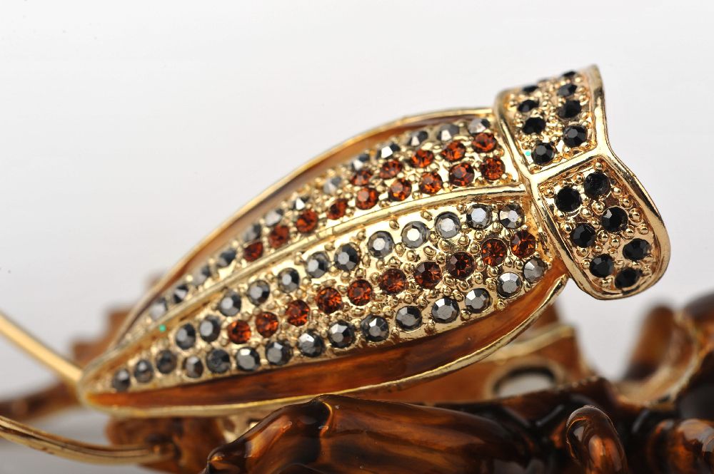 A beautiful handmade amber grasshopper trinket box.