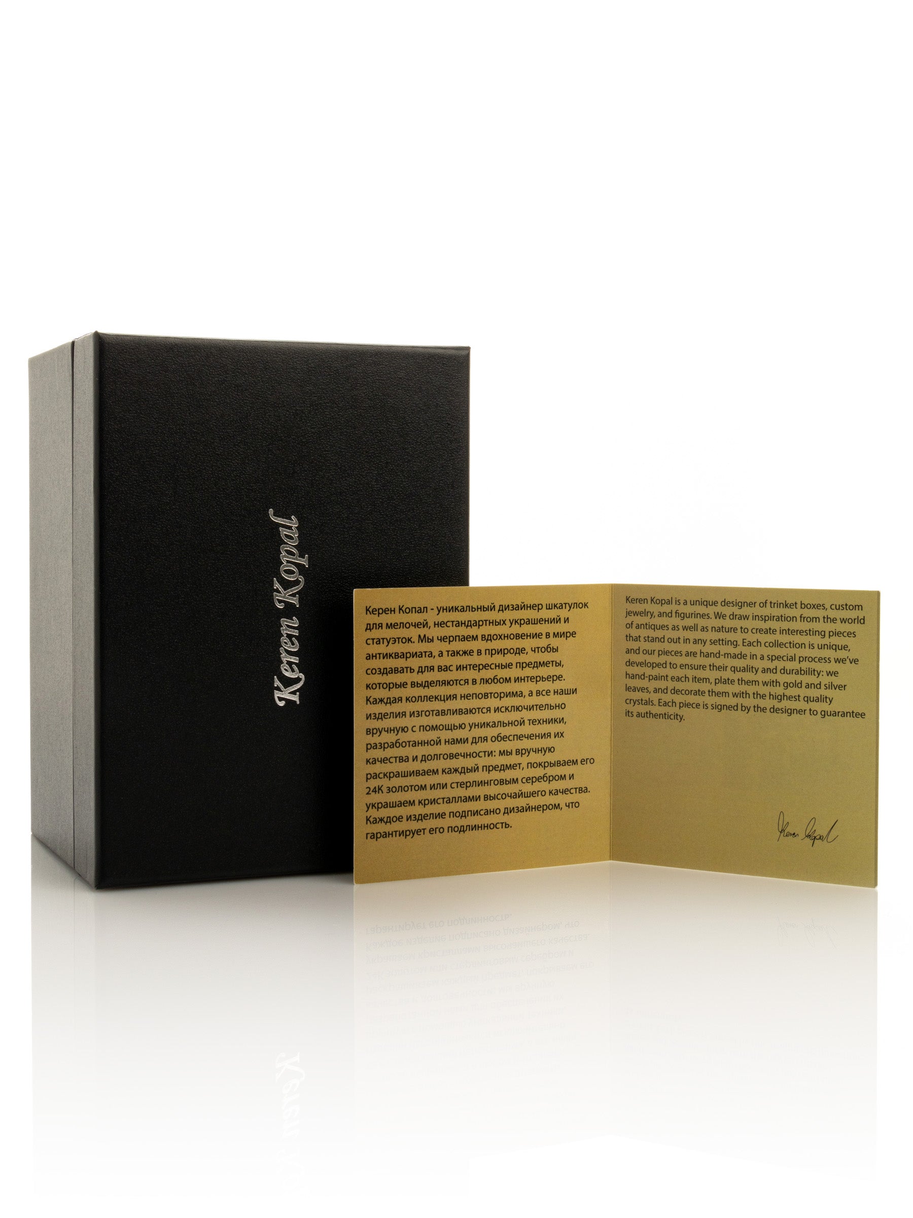 • Each item is painted by hand using a unique procedure that combines a distinctive enamel technique inlaid with Austrian crystals.