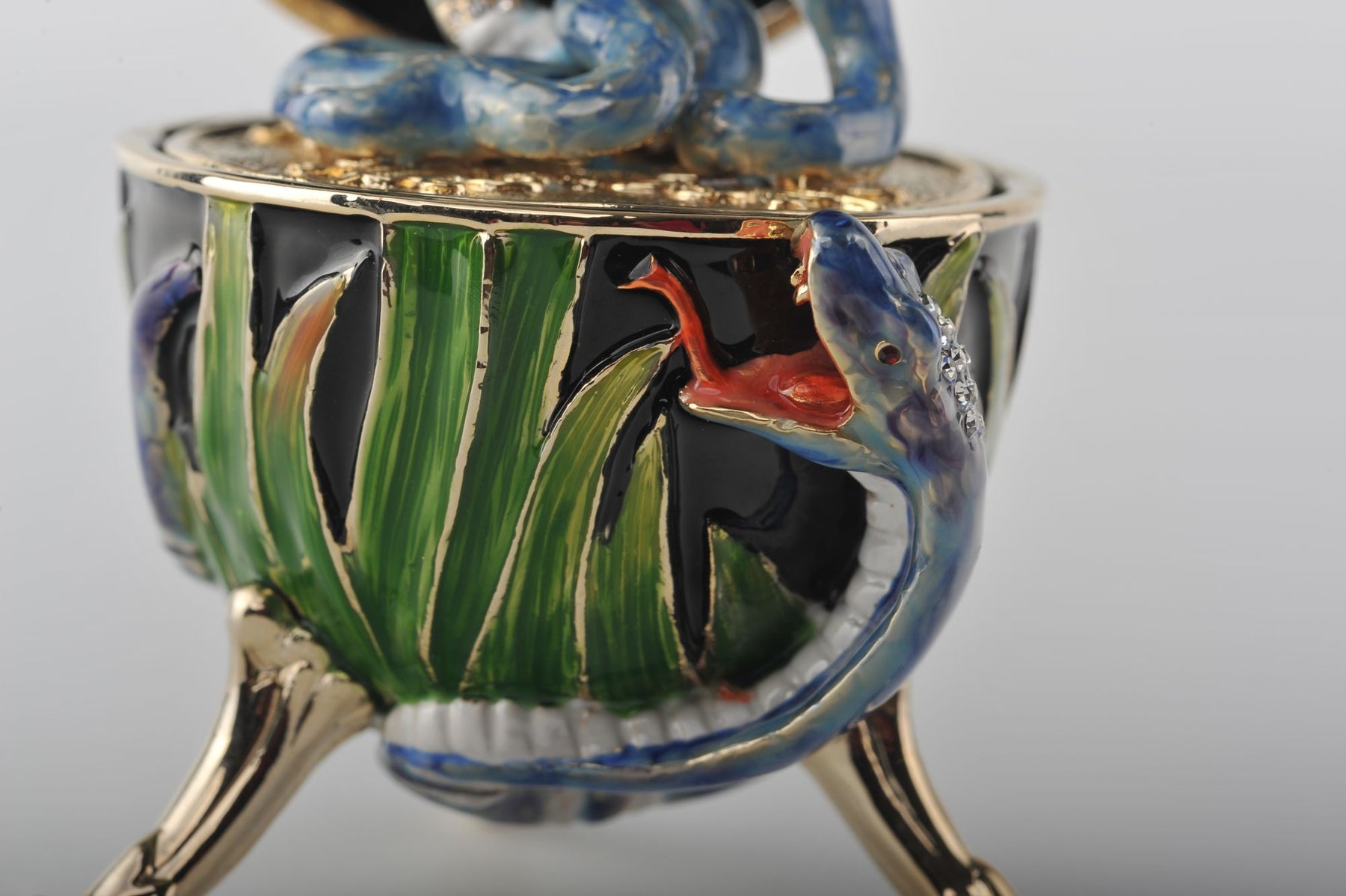 Faberge Styled Trinket Box Enamel Painted Decorated with Austrian Crystals