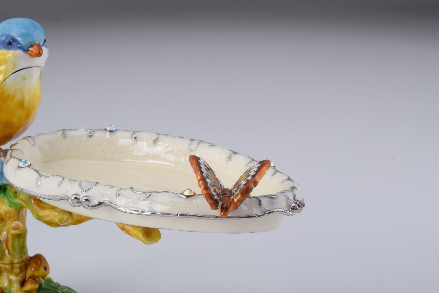 A charming Tanager Bird on a Tree with Butterfly Trinket Box.