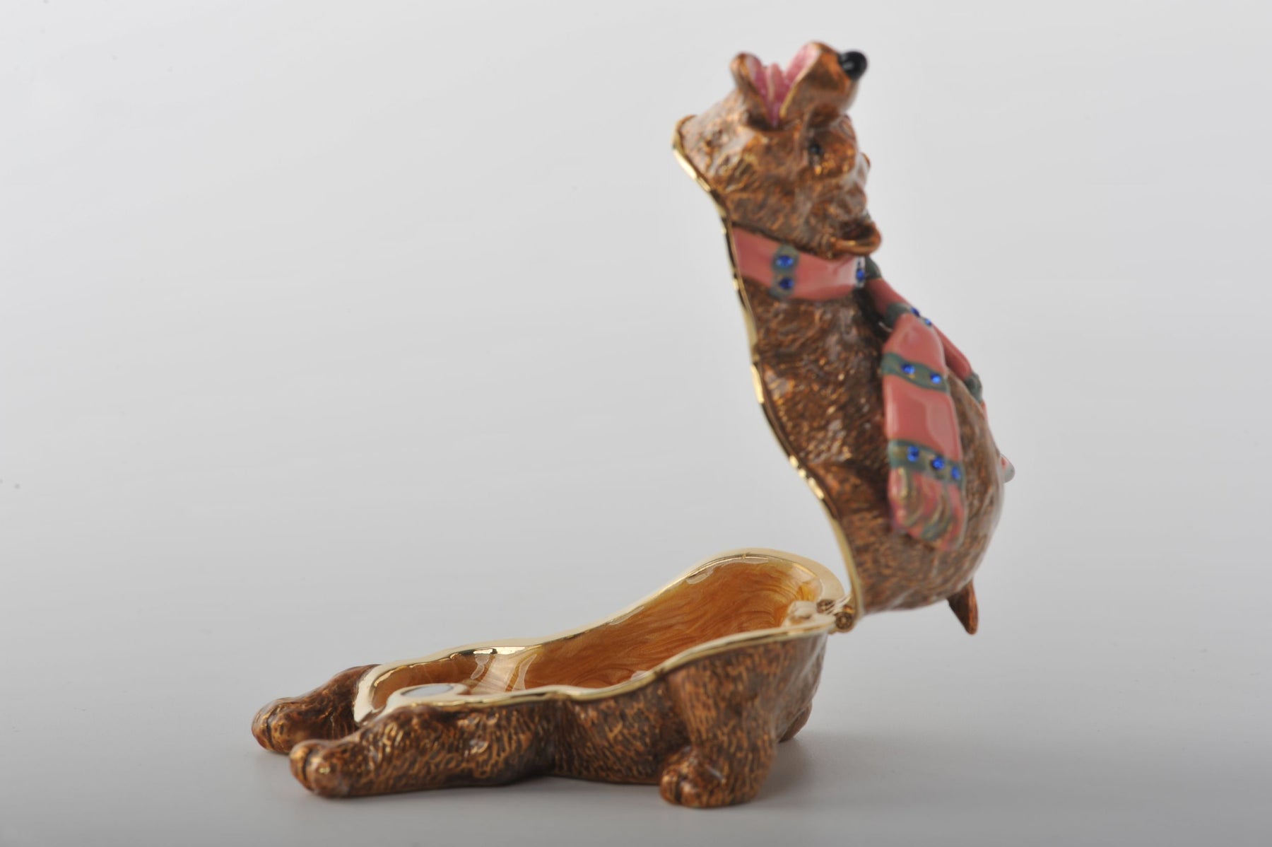 A splendid handmade Brown Bear with Pink Scarf Trinket Box.