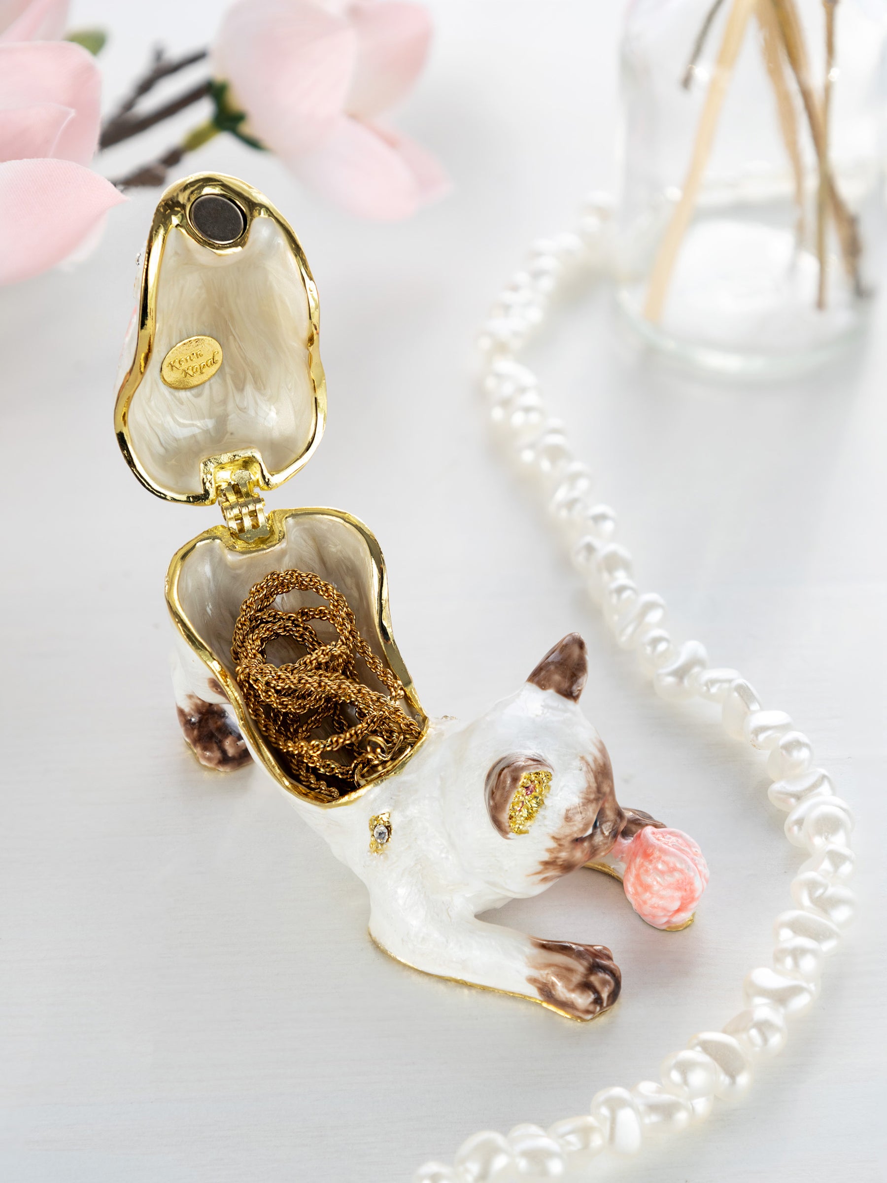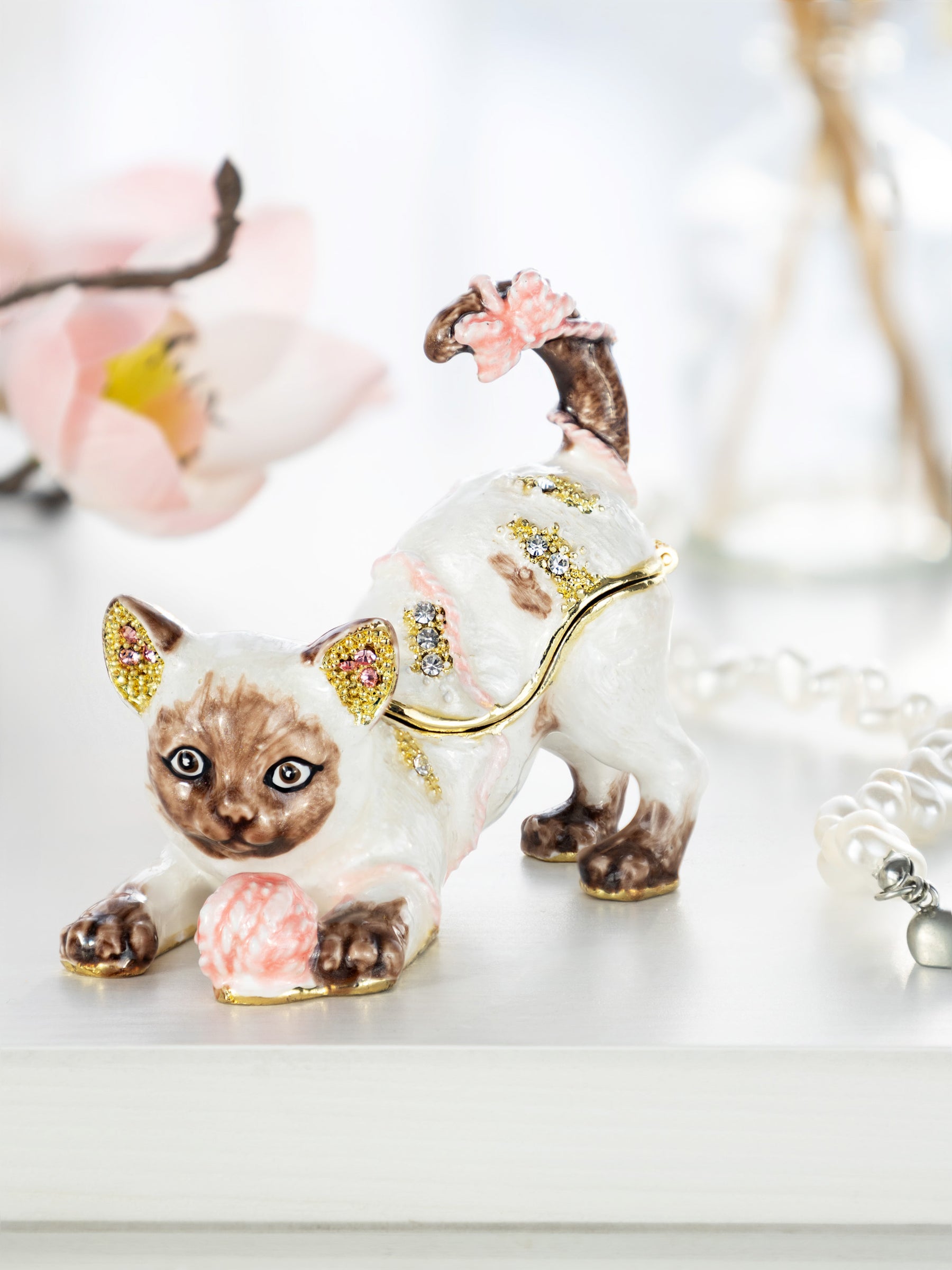 Enamel Painted Trinket Box Decorated with Austrian Crystals