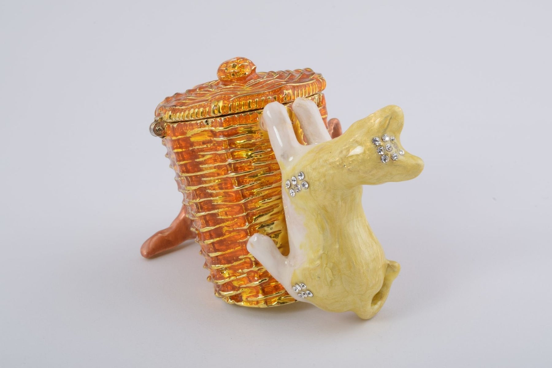 A delightful handmade Cats Playing with a Basket Trinket Box .