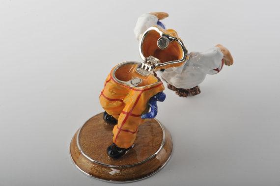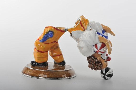 A stunning handmade Circus Clown Juggling Three Balls Trinket Box.