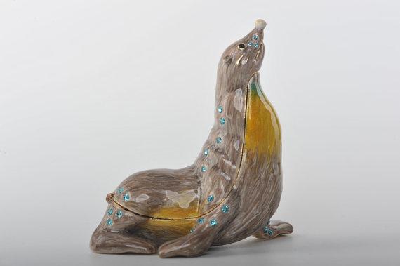 Enamel Painted Trinket Box Decorated with Austrian Crystals