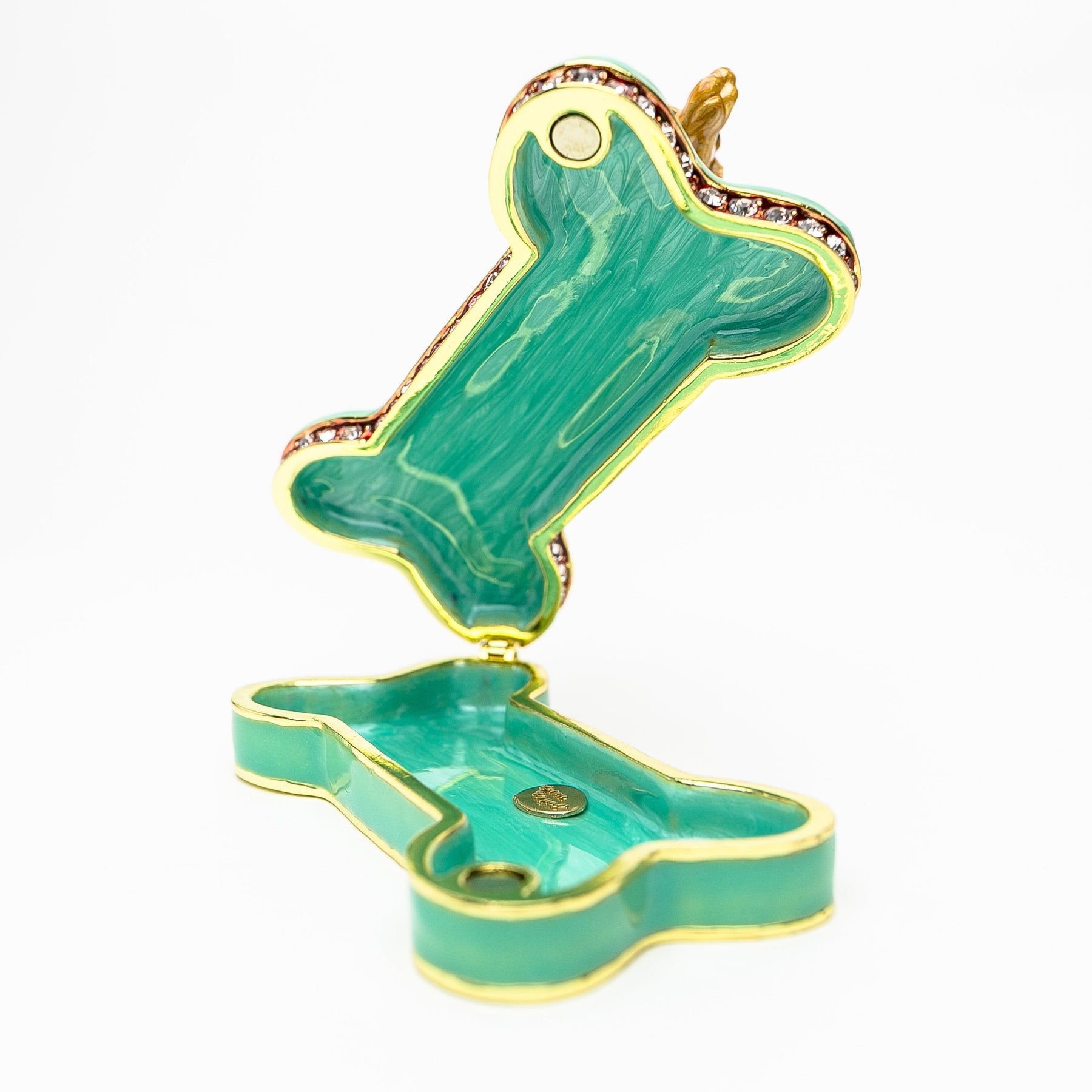 A fascinating handmade Dachshund Dog Sitting on Bone Trinket Box.