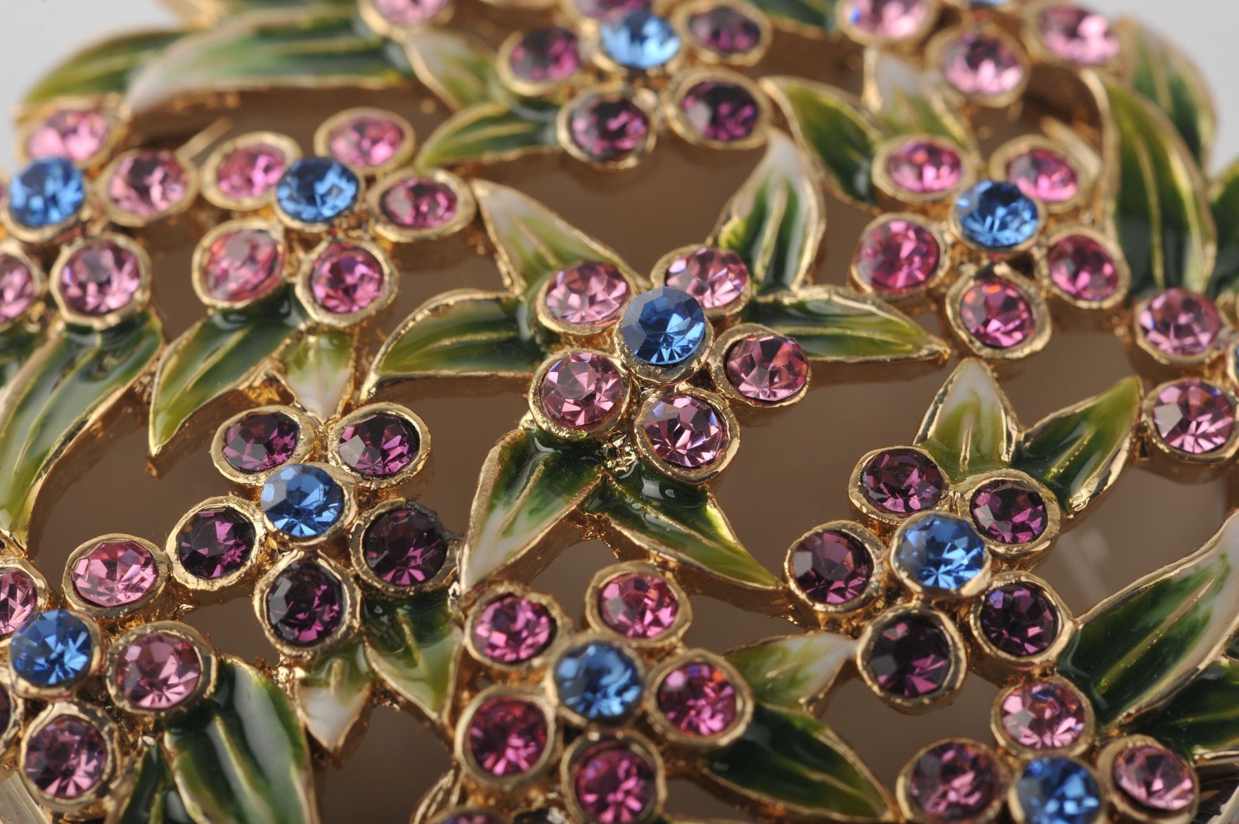 • Each item is painted by hand using a unique procedure that combines a distinctive enamel technique inlaid with Austrian crystals.