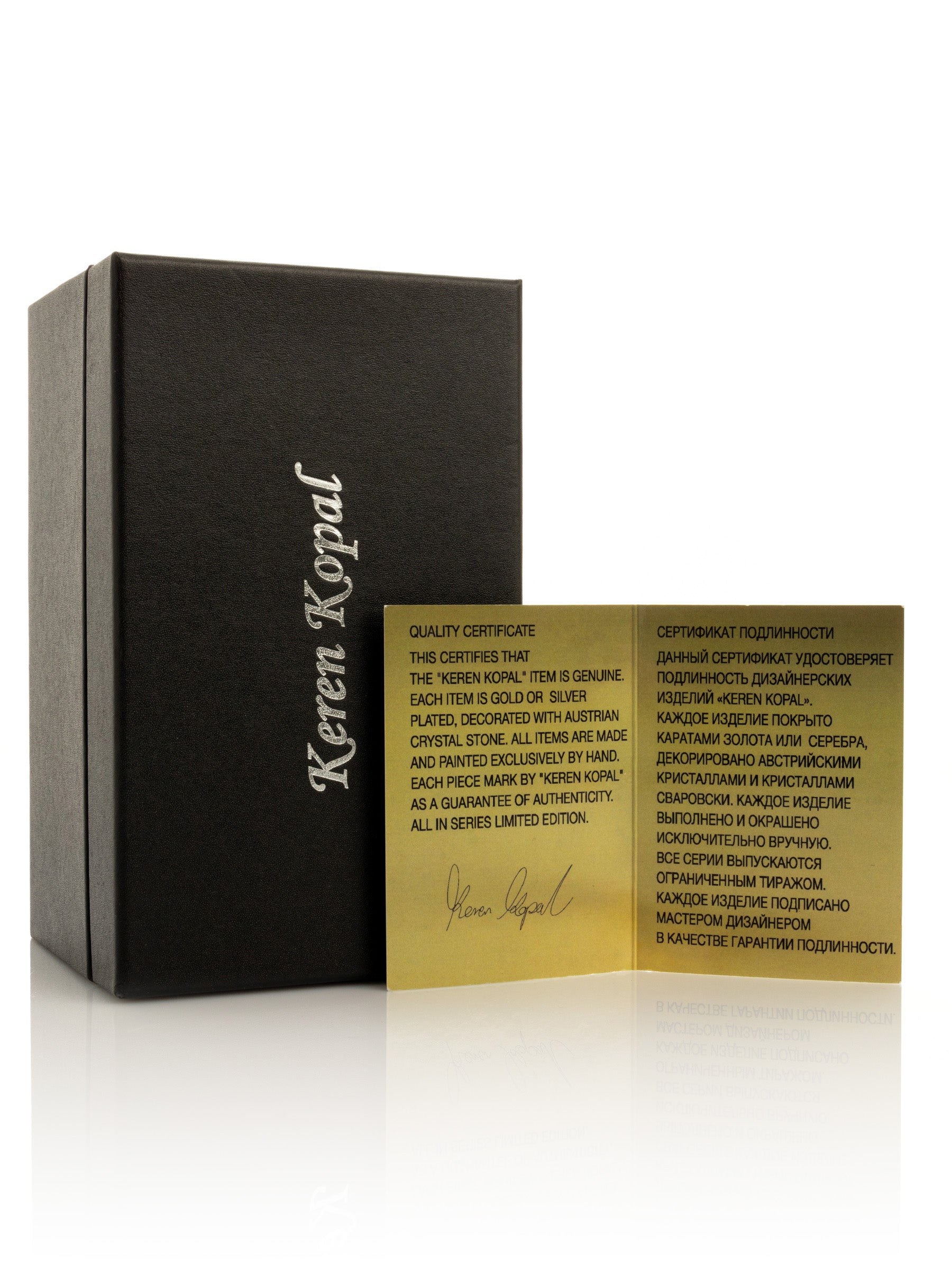 • Each item is painted by hand using a unique procedure that combines a distinctive enamel technique inlaid with Austrian crystals.