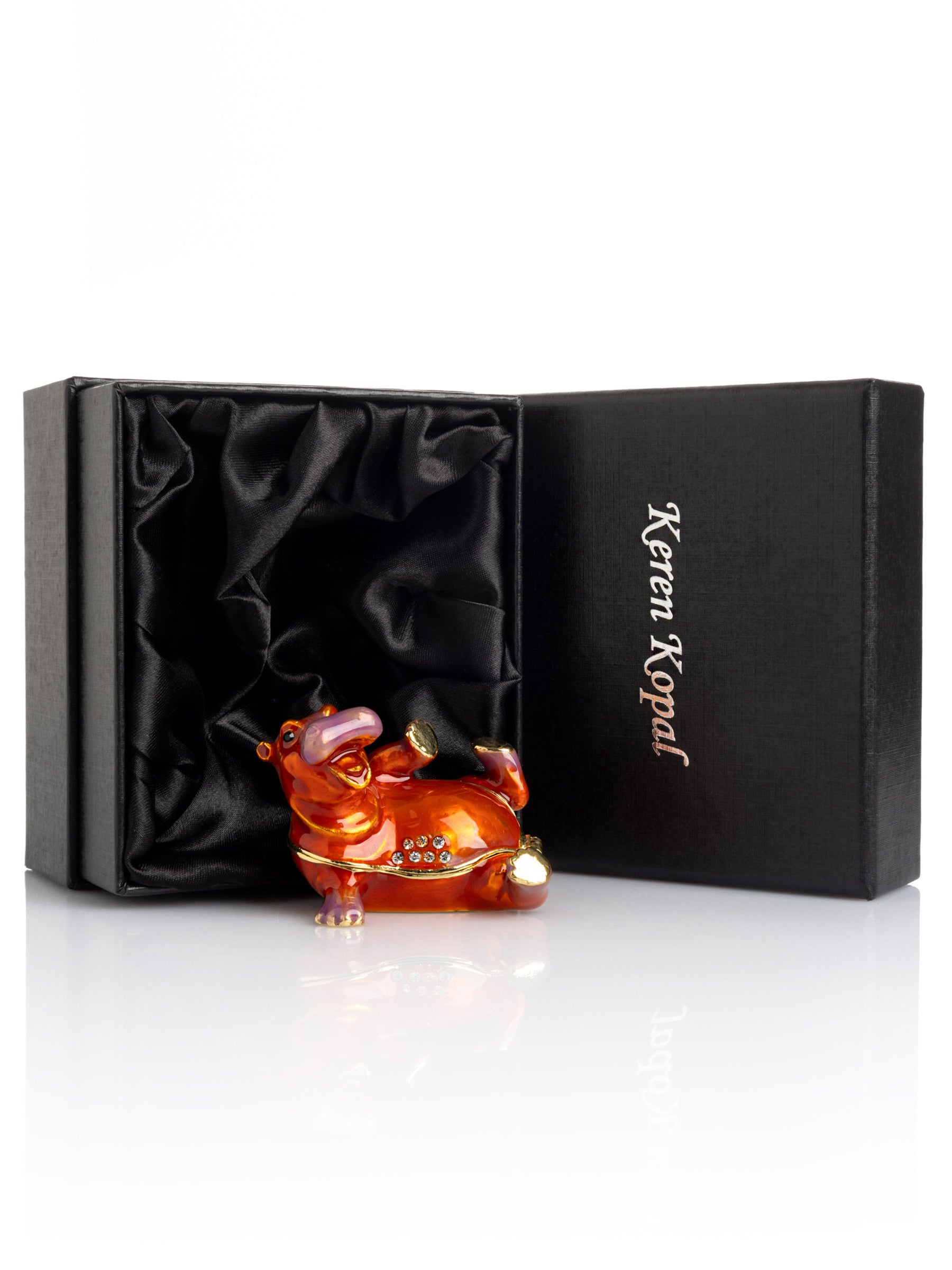 A charming handmade Hippo laying on his back Trinket Box.