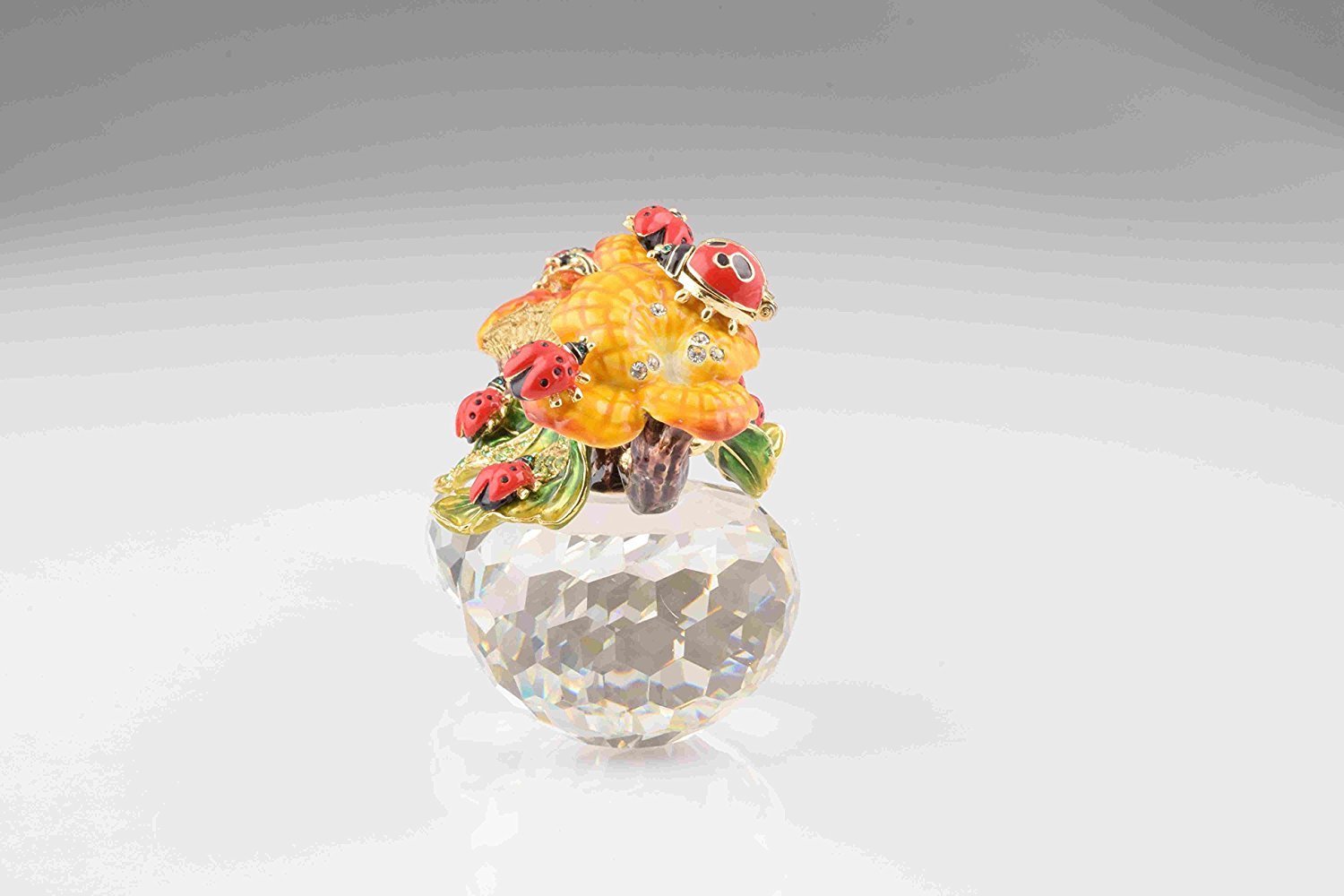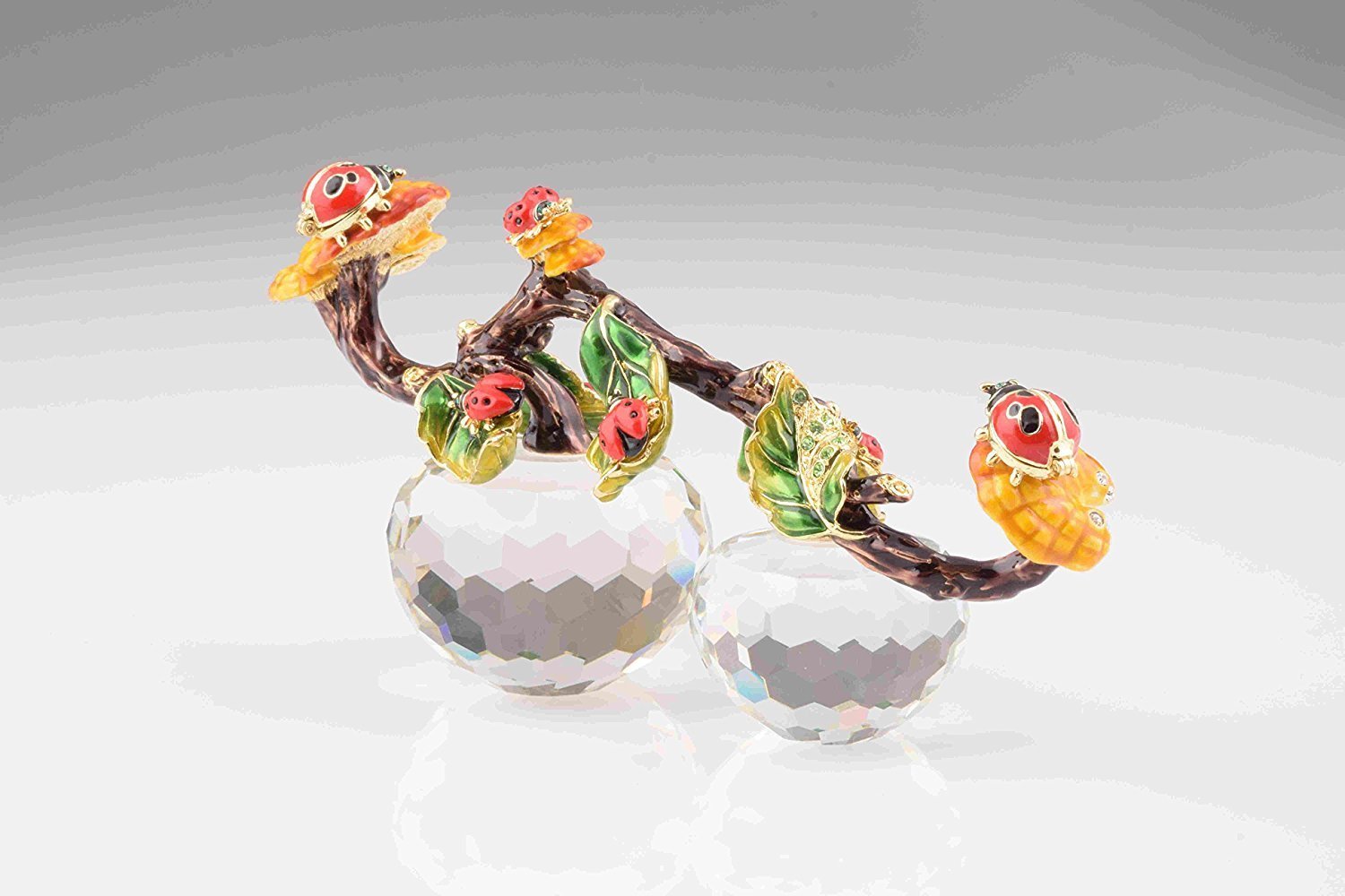 • Each item is painted by hand using a unique procedure that combines a distinctive enamel technique inlaid with Austrian crystals.