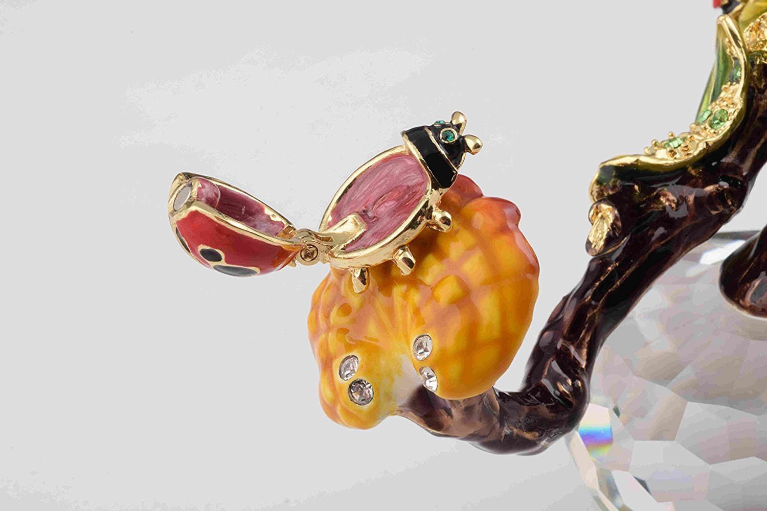 Enamel Painted Trinket Box Decorated with Austrian Crystals
