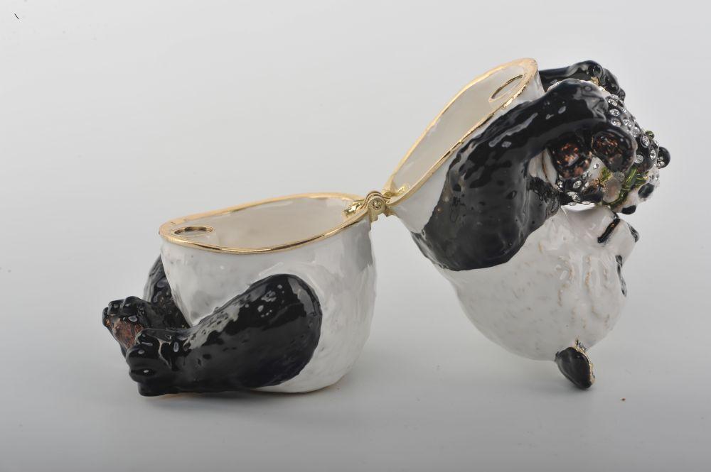 A glorious handmade black and white mother and son panda bears Trinket Box.