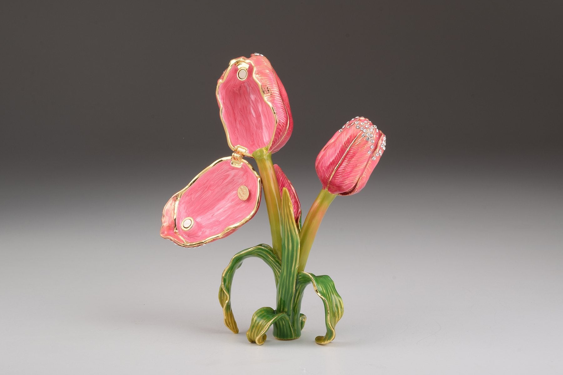• The trinket box has a magnetic fastener to secure the closure.
