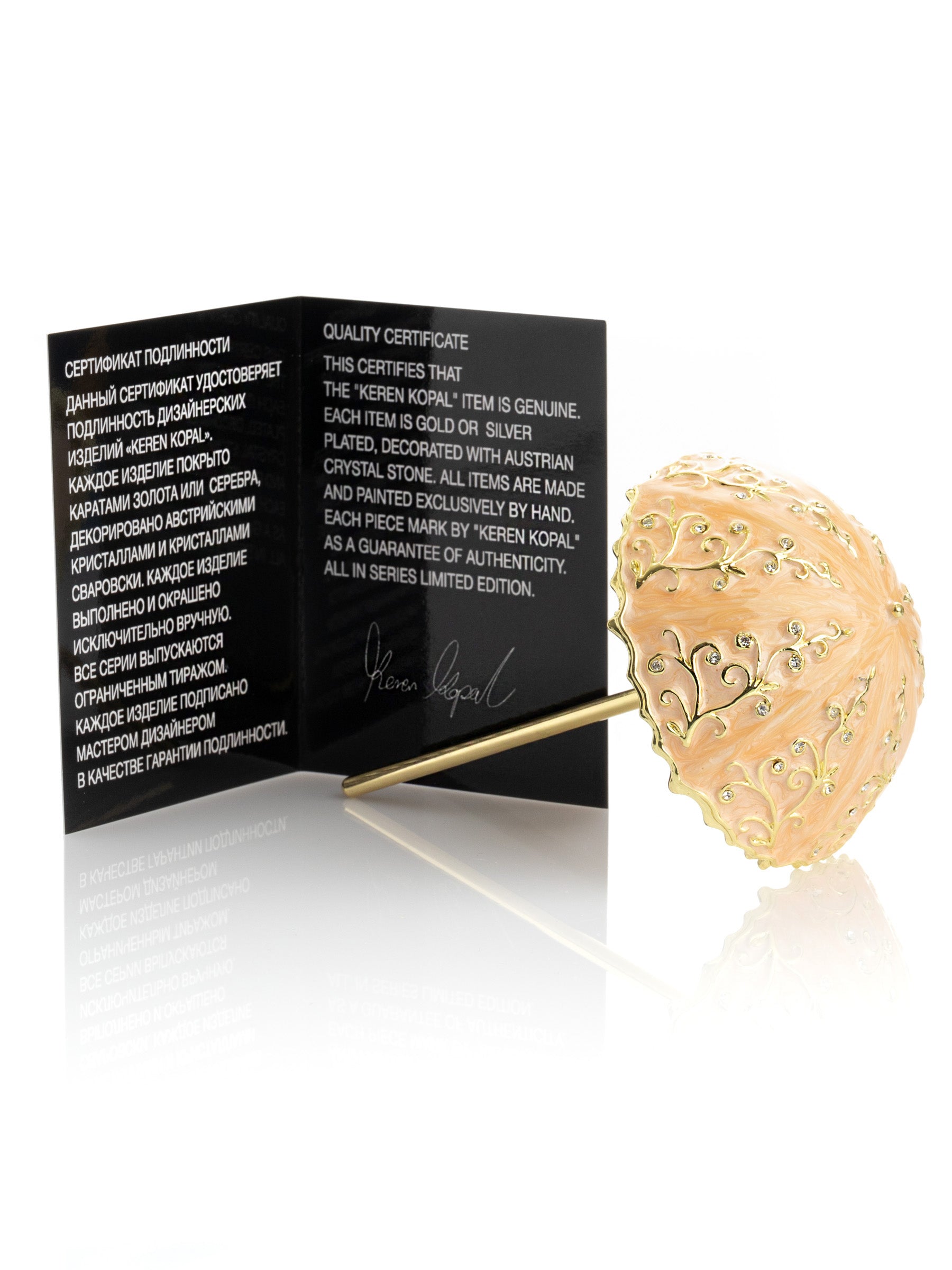 • The item is painted by hand using a unique procedure that combines a distinctive enamel technique inlaid with Austrian crystals.