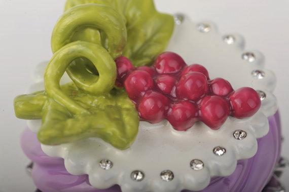 A beautiful handmade purple grape Cupcake Trinket Box .