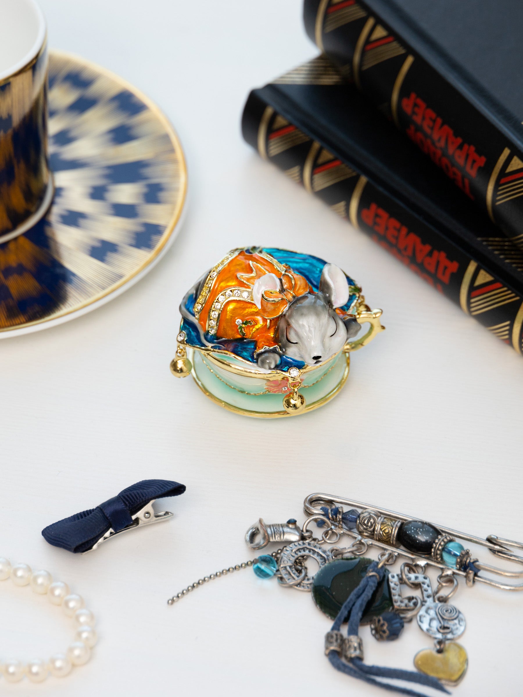 • Each item is painted by hand using a unique procedure that combines a distinctive enamel technique inlaid with Austrian crystals.