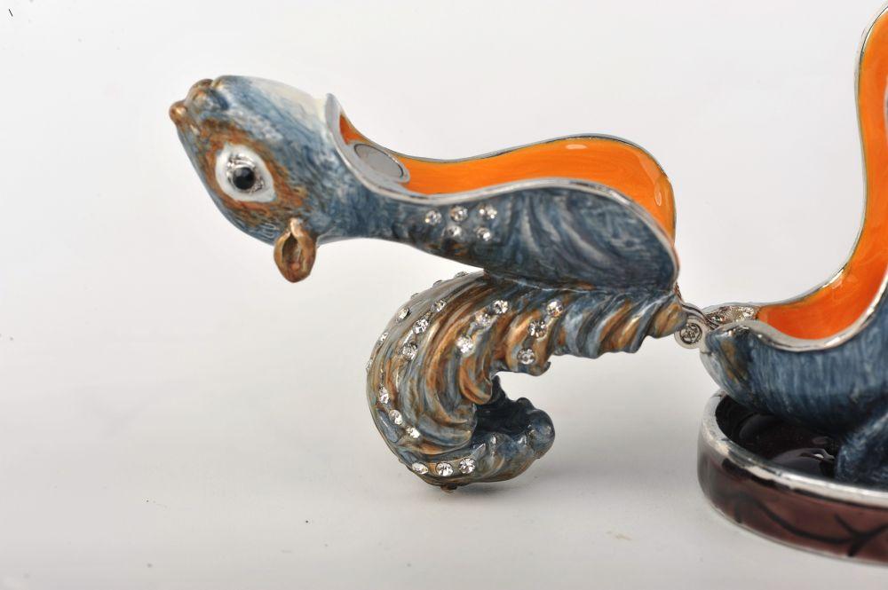A charming handmade squirrel with a red umbrella Trinket Box.