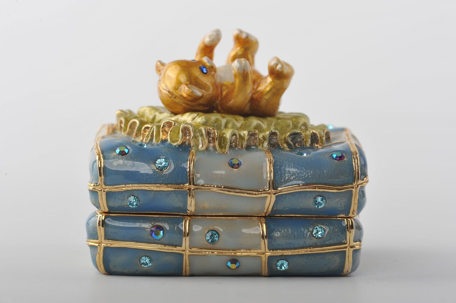 Enamel Painted Trinket Box Decorated with Austrian Crystals