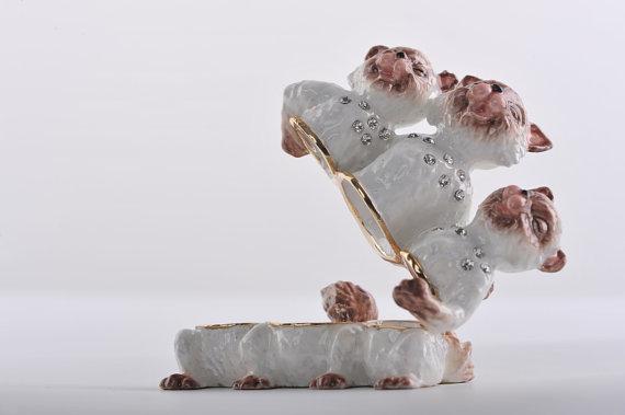 Enamel Painted Trinket Box Decorated with Austrian Crystals