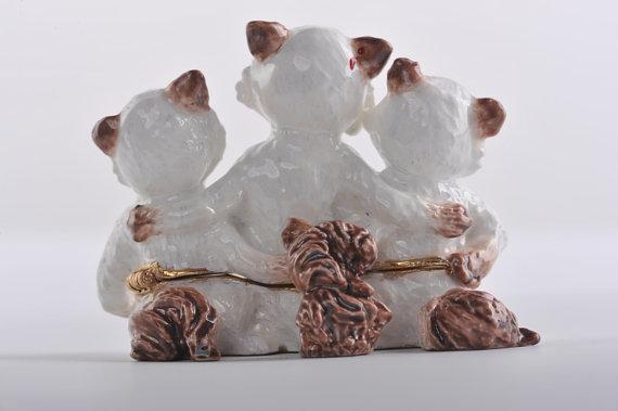 A Splendid handmade Three White Cats Singing Trinket Box.