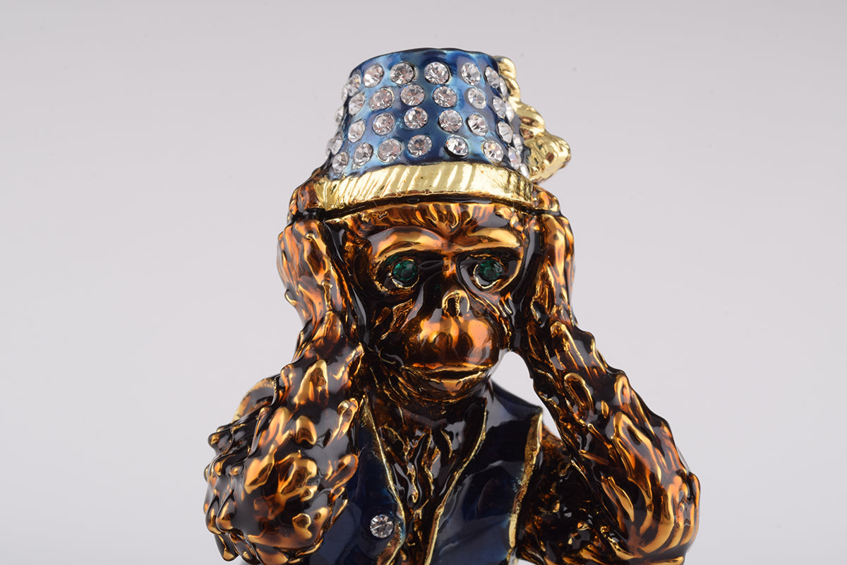 Enamel Painted Trinket Box Decorated with Austrian Crystals