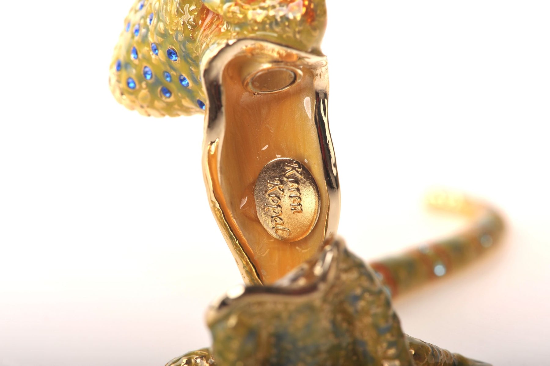 • Each item is painted by hand using a unique procedure that combines a distinctive enamel technique inlaid with Austrian and Swarovski crystals.